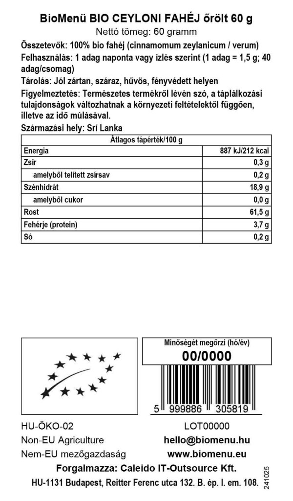 BioMenü BIO CEYLONI FAHÉJ őrölt 60 g termékkép