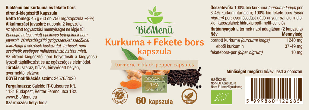 BioMenü BIO KURKUMA + FEKETE BORS kapszula 60 db