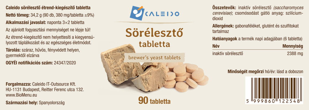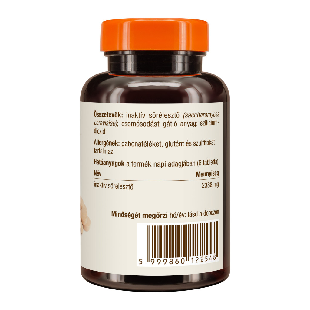 inaktív sörélesztő (saccharomyces cerevisiae); csomósodást gátló anyag: szilícium-dioxid; Allergének: gabonaféléket, glutént és szulfitokat tartalmaz
